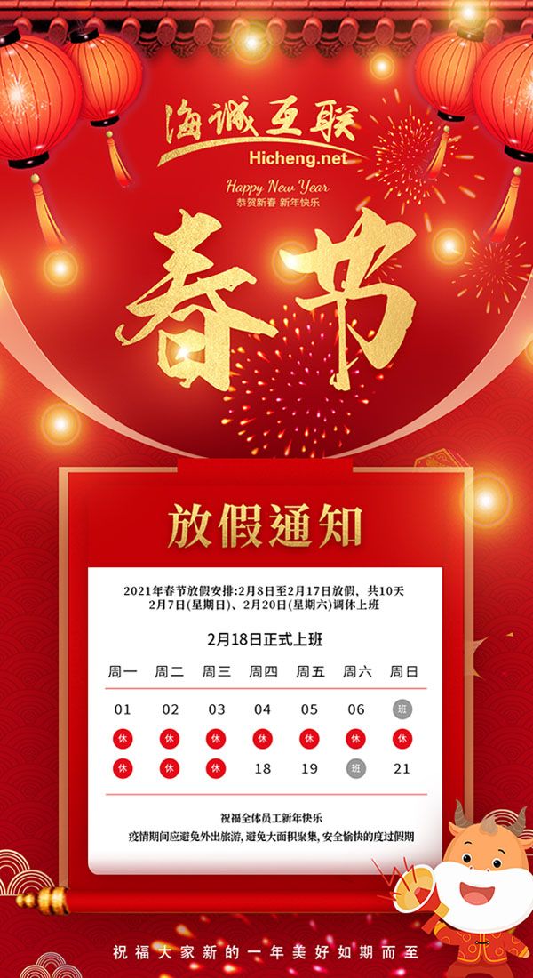海誠互聯(lián)2021年春節(jié)放假安排